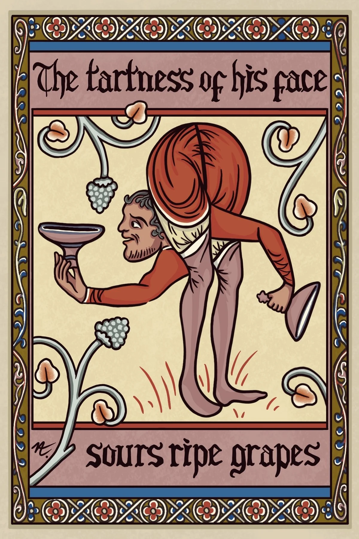 Brought into this world exclusively through my pen. (That’s right, it’s all hand-drawn!) With quill in hand and parchment at my side, I draw inspiration from the grandeur of medieval manuscripts, the wit of Shakespeare’s plays, and the jests of jesters long forgotten (and those of modern persuasion!)